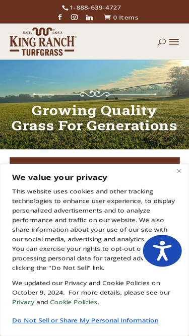 87%King Ranch Turfgrass, L.P. (“King Ranch Turfgrass”) wants you to know that whether you’re ordering online, or just browsing, your privacy is very important to