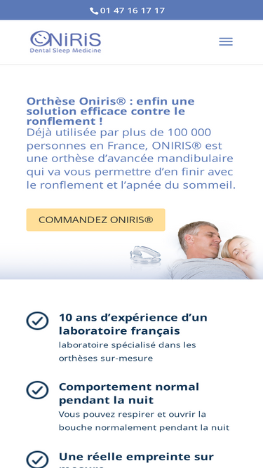 93%Pour en finir avec le ronflement une bonne fois pour toutes : la solution Oniris, c'est une efficacité prouvée cliniquement avec 94% des utilisateurs satisfaits !