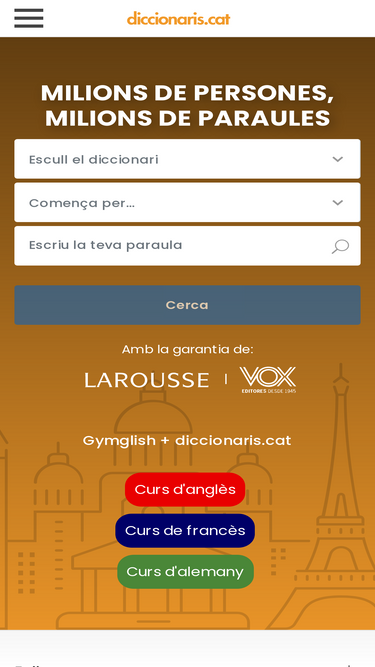 100%diccionaris.cat - consulta online de diccionaris monolingües i bilingües en català: diccionari de llengua catalana, sinònims en català, català-castellà, català-anglès, català-francès, castellà-català, anglès-català, francès-català