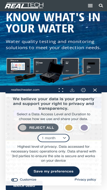 98%Real Tech is a trusted leader in online water quality monitoring and testing solutions to meet your individual monitoring needs.