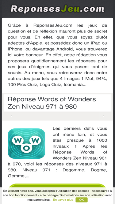 Trouvez la Réponse Words of Wonders Zen Niveau 791 à 800, ne perdez plus de temps pour passer au niveau suivant grace à l'aide de ReponsesJeu.com qui vous propose toutes les astuces pour finir le jeu.