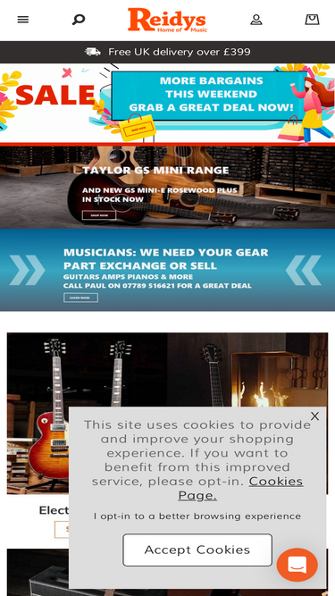 74%Premium Guitars, Pianos, Keyboards, Drums Violins and Orchestral Instruments. Your Home Of Music since 1922