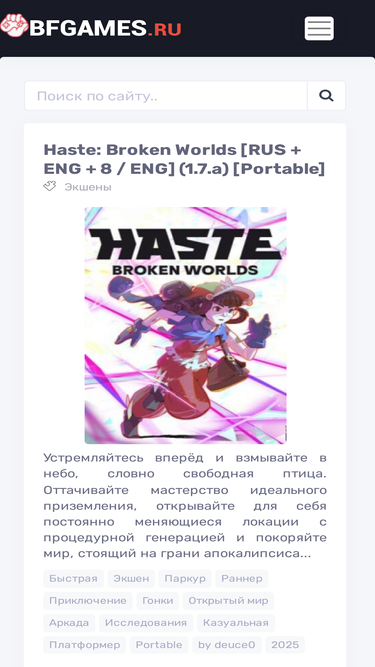 80%Дата выхода: 1 апреля 2025 г.Жанр: Экшены, Приключенческие игры, Инди, ГонкиРазработчик: LandfallИздатель: LandfallПлатформа: WindowsВерсия: 1.7.аРелиз: PortableТип издания: НеофициальныйЯзык интерфейса: русский, английский, китайский (упр.), французский, итальянский, немецкий, испанский, японский,