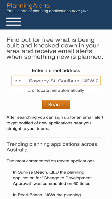 95%a free service which searches australian planning authority websites and emails you details of applications near you