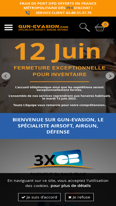 78%gun-evasion est le spécialiste de l'airsoft, de l'airgun et des articles de défense depuis 2004. répliques airsoft de qualité, accessoires, consommables, carabines à plomb et défense personnelle. promotions toute l'année, livraison 24-48h offerte dès 100 €. paiement cb, paypal et 3x sans frais !