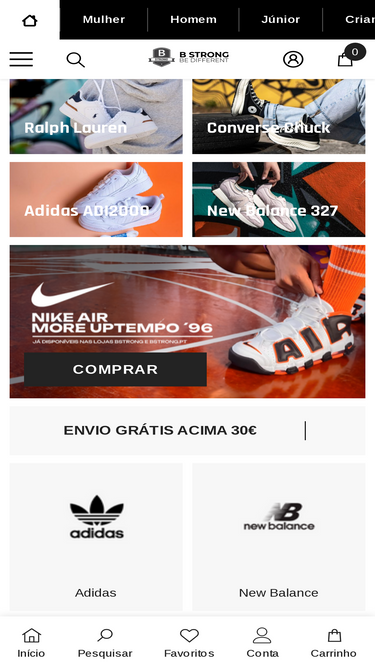 83%Para os amantes de Ténis e Sapatilhas. Veja aqui as últimas novidades e edições limitadas da Nike, Adidas, New Balance e muito mais. BStrong, Be Different!