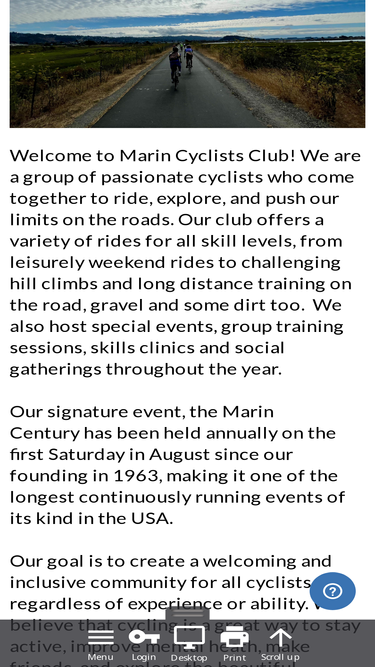 100%The Santa Rosa Cycling Club is a recreational club with regular rides in Sonoma, Napa and Marin Counties. The club also sponsors the Wine Country Century and the Terrible Two Double Century.