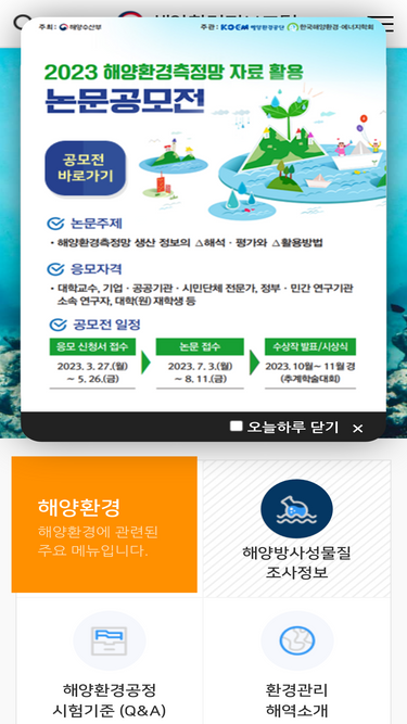 45%해양환경측정망, 해양생태, 갯벌정보, 해양폐기물, 해양보호구역, 해양보호생물, 해역이용영향평가, 폐기물해양배출, 정도관리, 수질평가지수, 해양생태계, 해양방사능