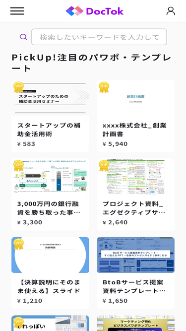93%DocTokは、営業、企画提案、資金調達など様々なシーンで実際に使った資料/パワポ/テンプレートを販売・購入できるサービスです。あなたの経験を他者のビジネスに役立てるナレッジシェアプラットフォームであり、高品質な資料を簡単に見つけてビジネスを加速させるマーケットプレイスです。DocTokで、新たなビジネスチャンスを発見しましょう!
