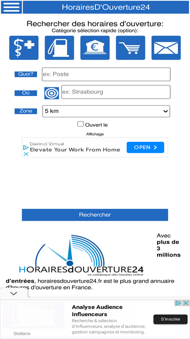 77%ici vous trouvez les horaires d'ouverture d'entreprises, services publics, prestataires de services et plus encore - plus de 1,6 millions d'entrées sur horairesdouverture24
