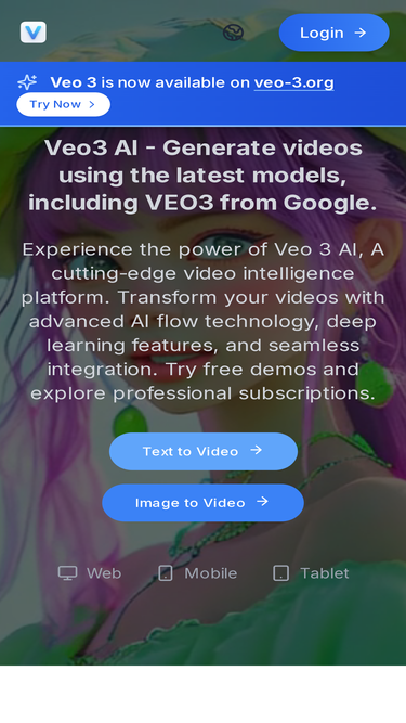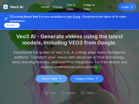77%Experience the power of Veo 3 AI, A cutting-edge video intelligence platform powered by Gemini Ultra. Transform your videos with advanced AI flow technology, deep learning features, and seamless integration. Try free demos and explore professional subscriptions.