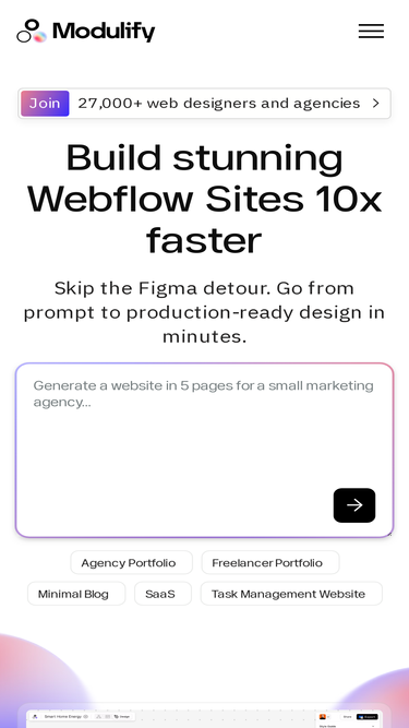 68%Build a Webflow site in minutes using Modulify AI features, perfect for freelancers and small agencies. Explore thousands of wireframes premium layouts and more.