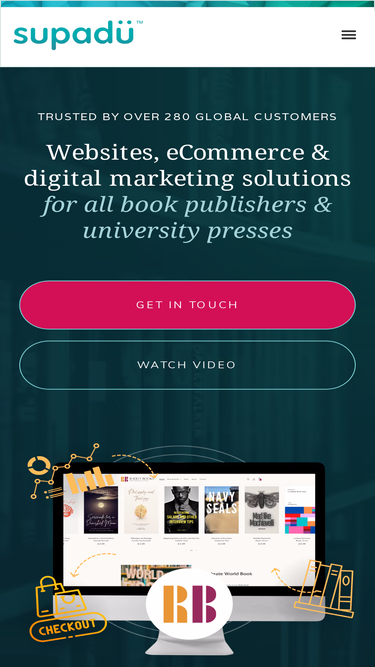 100%Supadu offers optimized websites, eCommerce and marketing solutions for all sizes of book publishers and university presses. Discover tools, such as Supadu's Smart Buy buttons and Smart Book Flyers that help build audiences, increase title visibility, and drive sales.