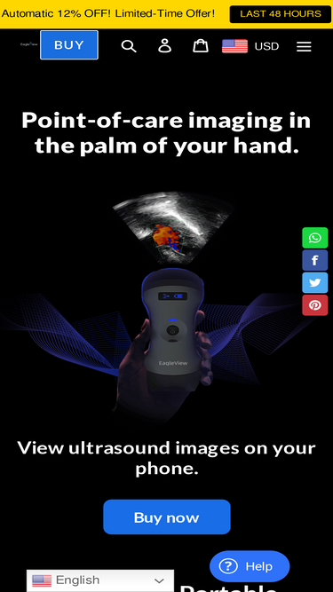 73%EagleView turns cart-based ultrasound machines into handheld portable point-of-care ultrasounds. One probe for full-body diagnostic imaging. The most portable doppler ultrasound with high-resolution. Ultrasound probe for iPhone and Android phone.