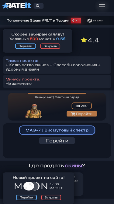 74%Проект от IgorFOX с Рейтингом сайтов, отзывы о проектах. Отправить сайт на проверку или оставить отзыв о сайте. Промокоды на Бесплатные скины CS2 и не только.