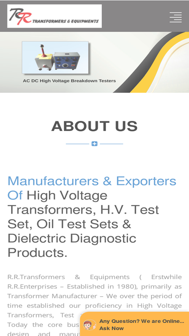 manufacturer of transformer, ac high voltage breakdown testers, dc high voltage breakdown testers, oil test set, high voltage transformers, relay test sets, mumbai, india