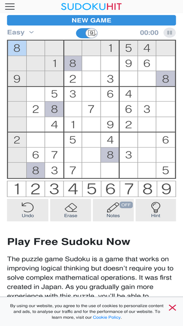 Играйте бесплатно в Судоку онлайн на нескольких уровнях сложности: легкий, средний, тяжелый и уровень Эксперт. Вы можете играть с любого устройства без регистрации