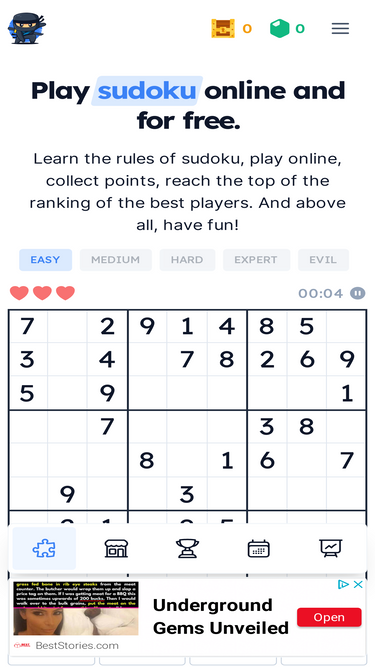 100%Jouez au sudoku en ligne gratuitement avec Sudoku Academy. Choisissez parmi 5 niveaux de difficulté, gagnez des points, suivez vos statistiques et grimpez dans les classements. Parfait pour les débutants et les experts !