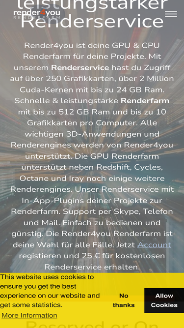 100%Easy - Cheap - Fast. Render4you render farm now supports Redshift version 3.5.17. Get 25 credits for free. Automatic Plugin. Register your Account now.