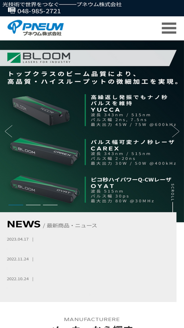 100%プネウム株式会社は、レーザー光源の輸入販売、及び、関連機器の設計・製作・加工を承ります