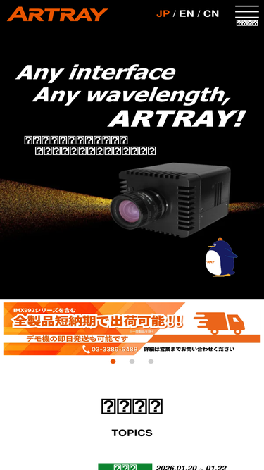 83%株式会社アートレイは、近赤外線カメラをはじめ、紫外線カメラやCMOSカメラなど、高精度な光学機器の開発・販売を行っています。幅広い波長領域に対応したカメラソリューションを提供し、産業や科学分野において多様なニーズに応えます。