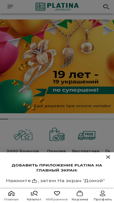 75%Интернет-магазин PLATINA Jewelry предлагает широкий выбор ювелирных украшений: кольца, серьги, подвески, цепи, браслеты и другие изделия из золота, платины и серебра. Собственное производство высокого качества по разумным ценам с быстрой бесплатной доставкой и оплатой бонусами.