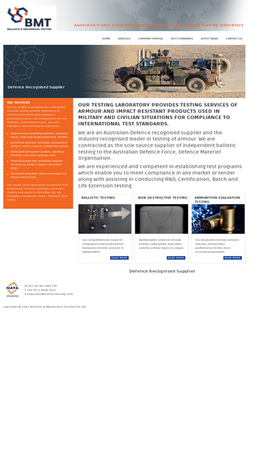 100%ballistic and mechanical testing provides testing services of armour and impact resistant products used in military and civilian situations for compliance to international test standards.
