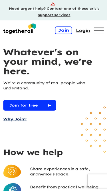 If you have questions around becoming and being a Togetherall member, safety or technical troubleshooting, you'll find answers in our FAQs.