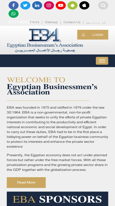 90%EBA is a non-governmental, non-for-profit organization that seeks to unify the efforts of private Egyptian interests in contributing to the productivity and efficient national economic and social development of Egypt. In order to carry out these duties, EBA had to be in the first place a lobbying power on behalf of the Egyptian business community to protect its interests and enhance the private sector existence
