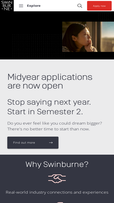 swinburne is a world-class university in melbourne that focuses on creating future-ready graduates, innovation, and producing research with real-world impact.