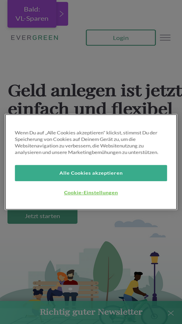 100%evergreen macht geldanlage einfach, flexibel und nachhaltig. investiere ab 1 euro gebührenfrei, mit täglicher verfügbarkeit. entdecke unsere pockets, die deine ersparnisse wachsen lassen und setze auf radikale fairness und transparenz in deiner finanzplanung.
