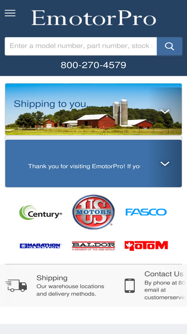 79%About us EmotorPro is a distributor for major motor manufacturers including Fasco, Baldor, Marathon, Rotom, Century (formerly A.O. Smith motor division) and US Motors (formerly Emerson). Our headquarters is in Saint Mary’s, Kansas. We ship from multiple warehouses around the US, allowing EmotorPro to serve the demands