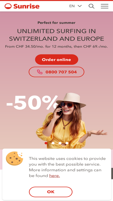 92%Welcome to Sunrise! • Mobile with 5G • Internet with up to 10 Gbit/s • TV & Entertainment ➔ Discover now and benefit from attractive offers!