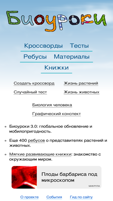 кроссворды, тесты, ребусы, авторские книжки, обучающие и методические материалы по биологии и немного по химиии.