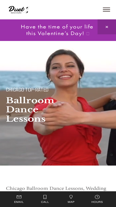 89%Duet Dance Studio Chicago offers ballroom dance lessons and wedding dance classes. We teach Ballroom, Salsa, Swing, Tango and Waltz lessons. Both privately and in groups for adults.