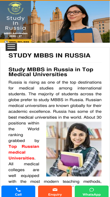 84%Study MBBS in Russia: MBBS in Russia for Indian Students. Get information on MBBS admission in Russia, MBBS Fees,Top Medical Universities in Russia, etc.