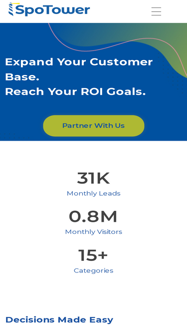 63%SpoTower is helping users across theglobe by simplifying theirdecision-making process in multipleverticals, on a daily basis. We providethem with the best match, based ontheir needs, powered by data tools and AI.