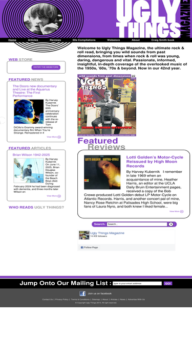 96%welcome to ugly things magazine, the ultimate rock & roll read, bringing you wild sounds from past dimensions, from times when rock & roll was young, daring, dangerous and vital. passionate, informed, insightful, in-depth coverage of the overlooked music of the 1950s, '60s, '70s & beyond. now in our 41st year.