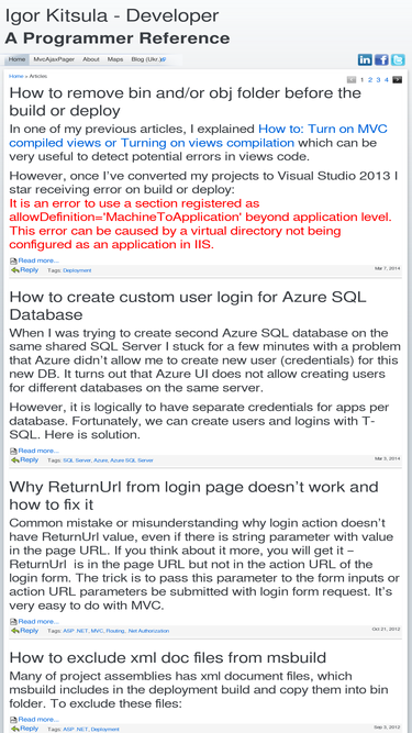 igor kitsula .net developer a web programmer reference. asp .net, mvc tips and tricks, best practices and patterns. iis. sql server. jquery