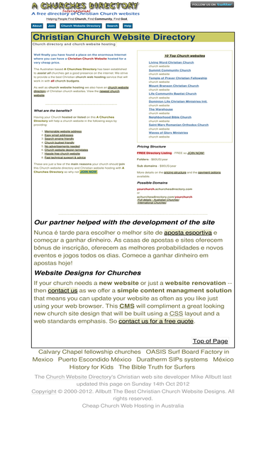 100%an international churches directory. a free church website directory of christian church websites. an international churches directory is the best place to add your christian church website. cheap church website hosting is available.