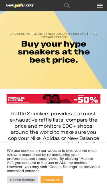 Raffle Sneakers, the website to easily find all raffles for Nike, Adidas, Jordan, Off-white and more sneakers. We search all the raffles to win and cop the best sneakers, at the RETAIL price.
