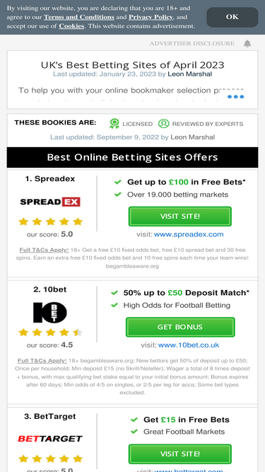 Die weiteren fünf Wettbewerber in der Top-10-Liste sind bestbettingsites.co.uk, bookmakers.bet, asianbookie.net, betfair.com und mytopsportsbooks.com.