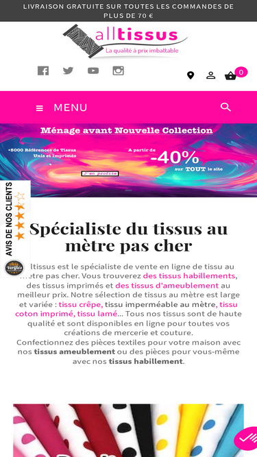 Un large choix de tissu au mètre pas cher. Faites votre choix parmi des milliers de références de tissus coton,lycra,wax,fourrure et achetez en ligne vos tissus et accessoires de mercerie.Acheter des tissus discount ♥ un large choix de tissus au mètre