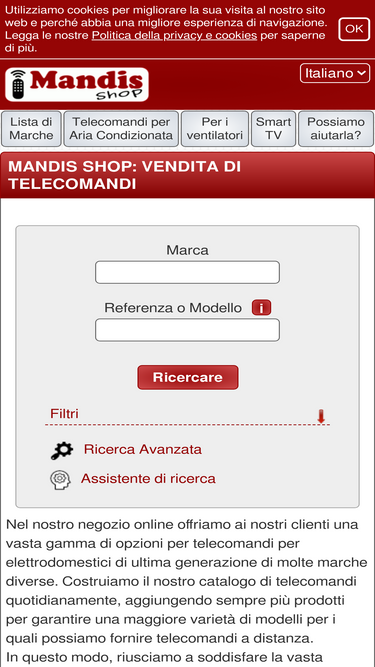 96%Negozio online di telecomandi per tutti i tipi di apparecchi e marche. Cerca per riferimento o marca e modello. Trova il telecomando perfetto.