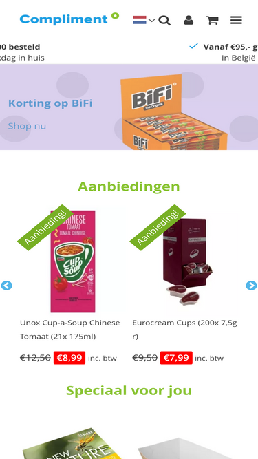 83%Bij online groothandel Compliment.nl koop je alles voor kantine, schoonmaak en kantoor. Ook voor particulieren. Snelle levering, vaste lage prijzen.