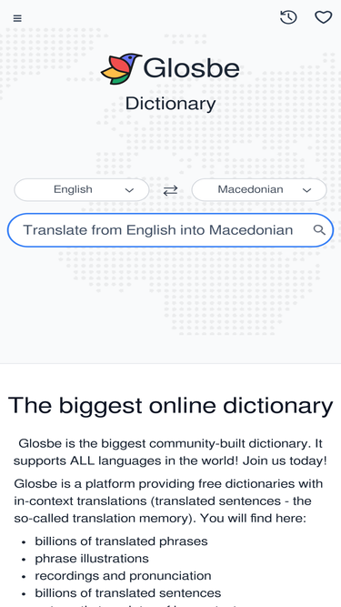 86%glosbe dictionary - one place, all languages! translations, example sentences, pronunciation recordings and grammar references. check it out!