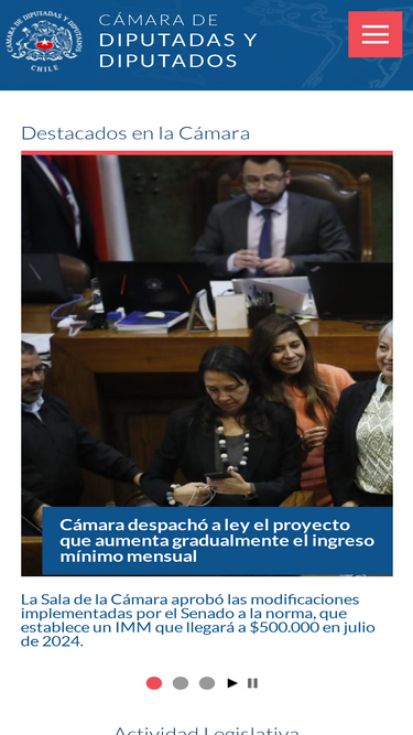 Sitio oficial de la Honorable Cámara de Diputados de Chile, organismo encargado por la Constitución Política de la elaboración de las leyes en conjunto con el Gobierno y el Senado