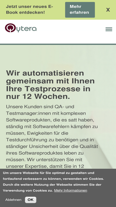 96%Qytera GmbH ist ein unabhängiges Beratungshaus, das Dienstleistungen und Lösungen rund um innovatives, modernes und hocheffizientes Qualitätsmanagement sowie professionelles Testen von IT-Projekten anbietet. Unsere Kernkompetenzen liegen hierbei auf dem Testmanagement, Testautomatisierung und den Lasttests. Qytera Software Testing Solutions GmbH ist ein zuverlässiger Partner bei der Entwicklung Ihrer Teststrategie.