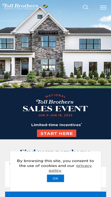 85%Toll Brothers® is an award winning home builder that creates luxurious new construction homes in some of America's most sought-after locations. Make your dream home a reality with Toll Brothers®