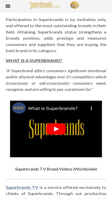 100%Superbrands is the world’s largest independent arbiter of branding. Superbrands pays tribute to the strongest and most valuable brands in the world.